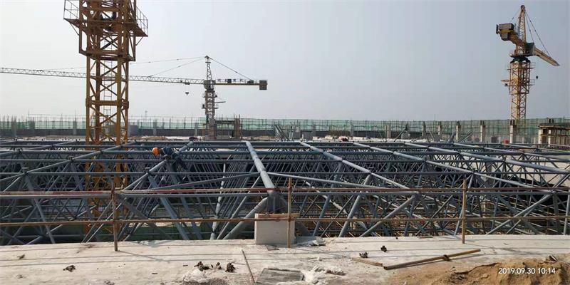 點(diǎn)支承網(wǎng)架比周邊支承的網(wǎng)架高度要大一些。當(dāng)網(wǎng)架中有穿行管道時,網(wǎng)架高度要滿足要求